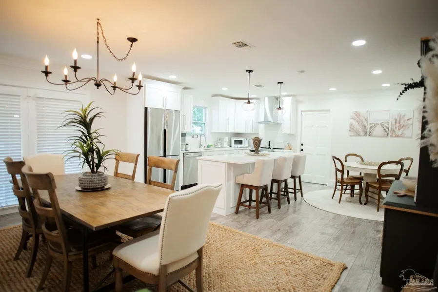 Discover the charm of this absolutely stunning and meticulously maintained home, once you see it, you'll look no further. Majestic oak trees and beautifully kept landscaping welcome you upon arrival, setting the perfect tone for what's inside. Step through the door and be captivated by the thoughtful design and attention to detail throughout this fully furnished, move-in-ready home. Elegant touches such as large baseboards, crown molding, and wood-look LVP flooring create a warm and inviting atmosphere. The beautifully decorated, spacious living room offers plenty of natural light and recessed lighting, setting the stage for comfort and style. The open-concept kitchen, dining, and breakfast area make entertaining effortless. You'll love the custom cabinetry, quartz countertops, stainless steel appliances, recessed and under-cabinet lighting, all blending together in perfect harmony. Down...