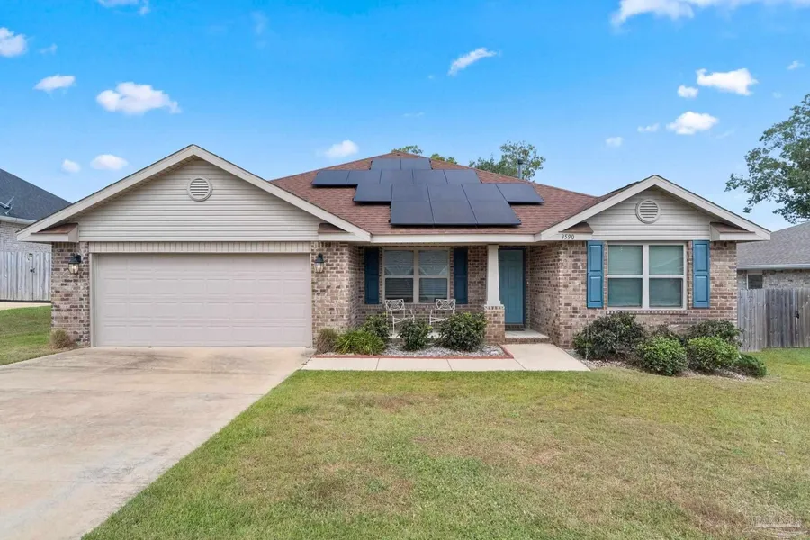 Your Family Dream Home Awaits! This all-brick beauty checks every box for a clean, move in ready home! With 4 bedrooms, 2 baths, and a bright open floor plan, it’s perfect for growing households who want both comfort and value. Step inside and you’ll find gleaming luxury plank flooring throughout the main areas and thoughtful touches like crown molding in the master and dining room. The kitchen is a showstopper with granite countertops, stainless-steel appliances, and loads of storage—ready for everything from snacks to hosting Sunday dinners. Outside, you’ll love the fenced backyard and spacious deck, perfect for cookouts, playtime, or your next garden project with the step-down garden beds ready to grow. And here’s the big win—fully paid solar panels mean your electric bills are practically gone! Located just 10 minutes from Navy Federal and 20 minutes to downtown Pensacola, you’ll have easy access to shopping, dining, and all the fun local festivals. Plus, there’s an assumable low-interest VA loan available, making this home even more budget-friendly. Affordable, energy-efficient, and move in-ready—this home truly shines with both quality and value.