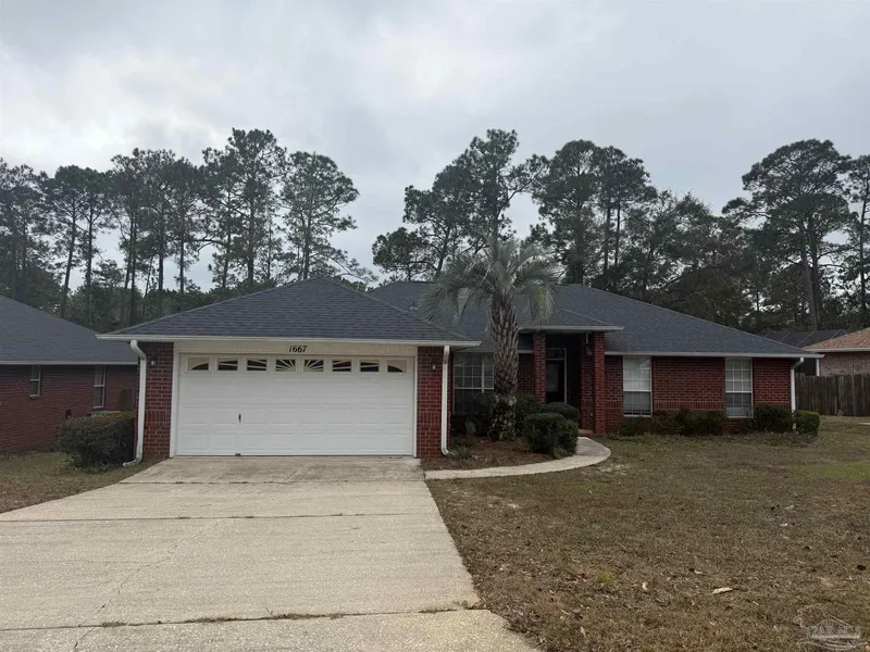 This gorgeous 4 bed/ 2 bath home is move in ready with fresh paint, new LVP flooring, new stainless steel appliances, updated light fixtures and a screened porch! The open and spacious split floorplan offers a formal dining room, eat in kitchen with island, living area with fireplace and plant ledges, huge laundry room and a two car garage. The main bedroom has an ensuite bath with an updated vanity, garden tub, separate shower, and two walk in closets. The fourth bedroom has a French door, which would make a great home office. Conveniently located near Kingsfield Rd in Cantonment, you're close to Navy Fed, hospitals, shopping, dining and top-rated schools. Owner is a licensed Florida Real Estate Broker.