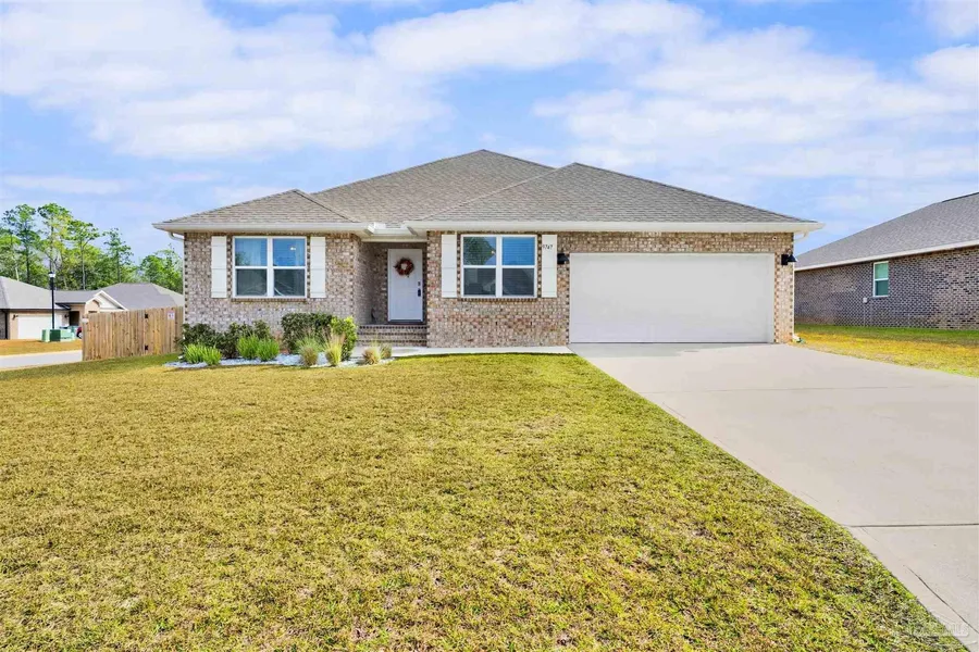 Welcome to this move-in ready 5 bedroom, 3 bath home located in a great community—a place where comfort, style, and convenience come together. With room for the whole family and better-than-new upgrades, this thoughtfully designed home offers modern living at its finest. Inside, you’ll find luxury vinyl plank flooring throughout the main living areas and plush carpet in the bedrooms for added comfort. The open living floor plan is perfect for everyday family life or hosting gatherings. A huge great room with stylish accent walls creates a bold and inviting centerpiece for the home. The chef’s kitchen is sure to impress with a large center island, granite counters, stainless steel appliances, and a walk-in pantry. A double split floor plan provides exceptional privacy for both the primary suite and guests. The primary suite features a spacious bedroom that flows into an ensuite offering double vanities, granite counters, a walk-in shower, walk-in closet, and a private water closet. All additional bedrooms are generously sized with ample closet space. The laundry room, conveniently located off the kitchen, leads to the double-car garage outfitted with epoxy-coated flooring and ceiling-mounted storage racks. Step outside to a privacy-fenced backyard complete with a covered patio, also finished with epoxy flooring. It’s an ideal space for backyard BBQs, playtime, or even adding a future pool. Located just minutes from I-10, Navy Federal, schools, and shopping, this home offers both convenience and community. With its thoughtful upgrades and spacious layout, this is truly a great place to call home.