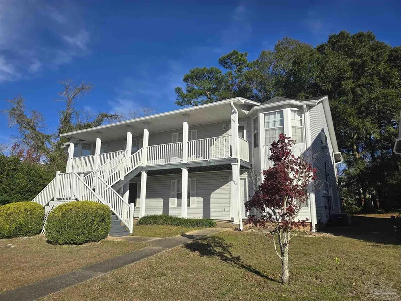 Great condo in a desirable location. This well-maintained complex is convenient to the University of West Florida, restaurants, shopping, hospital, and the interstate. This unit is ground level for ease of access. Inside you will find tiled flooring in the great room, kitchen and baths. Kitchen offers a service bar to the living room. Living room has a cozy, corner, tiled fireplace. The living room opens out to a covered back porch with additional storage. All appliances convey, including the washer and dryer. The roof of this four-unit building is less than 2 years old. This unit comes with 2 assigned parking spaces. The complex also offers a spacious greenbelt area by the lake.