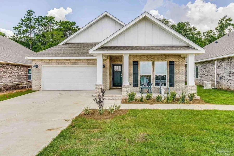 Welcome to Windy Hill South! The Riverside floor plan boasts 5 bedrooms, 3 bathrooms, and a 2-car garage. The front of the home features guest bedrooms 4 and 5, accompanied by a shared guest bathroom. At the rear, you will find a spacious open-concept area that combines the kitchen, living room, and dining space. The kitchen is designed with an island, quartz countertops, a pantry, and sleek stainless-steel appliances. Adjacent to the dining area, a hallway leads to guest bedrooms 2 and 3, along with an additional guest bathroom. Bedroom 1 offers a private sanctuary near the living area, complete with a luxurious bathroom and a walk-in closet. Additionally, this home features a Smart Home Technology package. Enjoy the perfect balance of privacy and convenience, with easy access to both Pensacola and the Alabama border. Only 25 minutes from pristine beaches and military bases, this charming location provides the ideal setting for a serene lifestyle without sacrificing proximity to the area's best attractions.