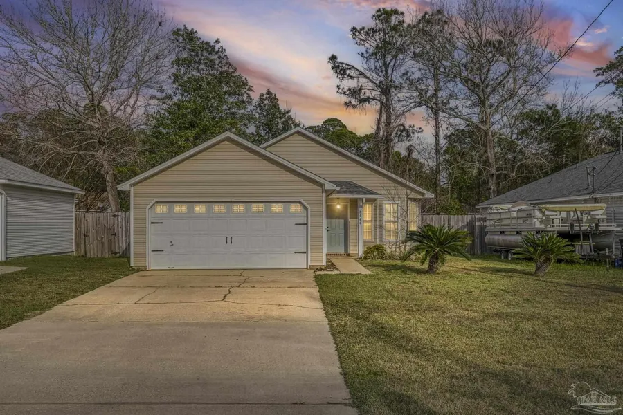 Unpack, unwind and relax! That’s all there is to do in this MOVE IN READY home. This adorable 3 bedroom 2 bathroom home packs quite the punch. A spacious driveway leads right to the 2 car garage, giving room for cars and all kinds of toys. NO HOA means you can even park your boat here. A charming blue front door welcomes you right inside. Down the hall you can take a left that goes to the guest rooms and guest bath and laundry rooms. Off the hallway to the right is the kitchen and dining room. The kitchen features custom epoxy counter tops that give the look of marble and are topped off by a beautiful tile backsplash. In addition to all the appliances that will stay with the home, is a reach-in pantry for extra storage. The dining room is connected to the kitchen and is surrounded by windows. All the beautiful natural light shines right through all the way into the kitchen. Beyond the kitchen is a spacious living room with a vaulted ceiling. A cute breakfast bar connects the kitchen and living spaces. Tucked in the back of the home, allowing for privacy, is the primary bedroom. Sure to be one of your favorite spaces with 2 closets, one being a nice big walk-in, and an ensuite bathroom. The backyard is a generous size and features an open patio, arched trellis and a palm tree….. exactly what every Florida home needs! Conveniently located near NAS Pensacola and a quick drive to our award winning beaches, this home really has it all. Live worry free with a 2021 roof, 2022 water heater, 2017 HVAC and a full inspection report ready to share with buyers. Don’t wait, schedule your tour today.