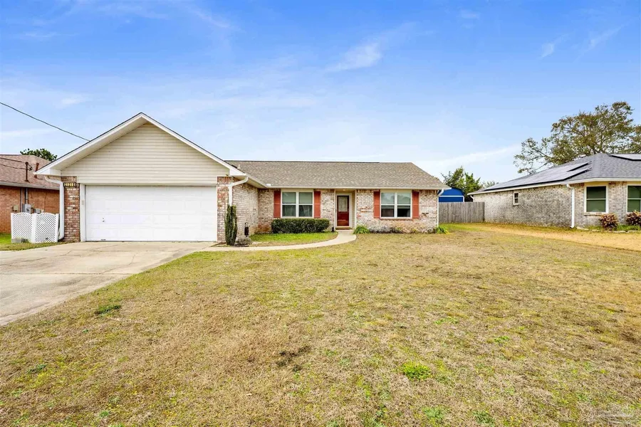 Located in the highly desirable coral creek neighborhood, this well-maintained 3-bedroom, 2-bath home offers the perfect blend of comfort, convenience, and location. Just 3 miles to the West Gate of NAS Pensacola and only 15 minutes to the sugar-white beaches of Perdido Key, this home puts you close to everything while still feeling tucked away. The single-level, all-brick exterior adds timeless curb appeal, while inside you'll find a desirable split-bedroom floor plan and a spacious living area with vaulted ceilings that create an open, airy feel. Step outside to a large, fenced backyard - ideal for entertaining, pets, or simply enjoying quiet evenings at home. Conveniently located near schools, hospitals, military bases, beaches, and historic downtown Pensacola, this home offers both everyday ease and long-term value.