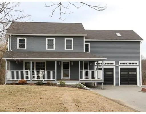 Now the SPRING IS HERE, check out this great yard with pristine colonial boasting ultimate mbr suite with soaring cathedral ceiling & 2 skylights, full bath, 2 walk in closets, hw foor & more. Features include wrap around farmer's porch across the front leading to spacious 9 rm, 4 br +den 2.5 bath Colonial w/ walk out basement on lovely lot with patio and plenty of yard area for your family to enjoy... HW floors throughout, formal LR& DR, plus first floor FR. Sliders in DR & FR to deck, first floor half bath with laundry, 2 c attached garage. Sitting back from the road, pretty as a picture, located directly across from Moraine Farm, in super, convenient location handy to Rt 128, walking trails, shopping, etc. NOTE:The seller has worked it out with the neighbor to move the small garden border, that abuts the driveway, in so that it will no longer impede a straight shot into the 2nd garage. (photos attached)