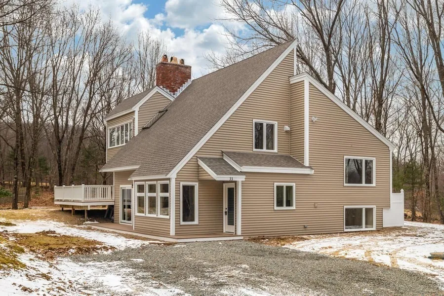 Looking for privacy, this is it! Sprawling, usable 6.4 Acre lot is where this wonderful Contemporary Post and Beam 3 BR, 2 BA home sits. Your dogs, horses, chickens and garden abilities will love all the open space! Home has been completely renovated including a finished basement with a multitude of possibilities. A brand new chef's kitchen with granite and stainless appliances is the heart of this beautiful home. Family and Dining rooms have warm inviting fireplaces. Work from home in the office loft a stone's throw away from the inviting Master bedroom suite with ample closet space and full bathroom. Brand new Septic System, Roof, Siding and Heating/Cooling system. Easy to show. Call or Text for lockbox code.Open House Saturday 2/5 12-2:30 Sunday 2/6 11-1 All Offers, if any, will be reviewed at NOON on Tuesday 2/8, please allow 24 hours for response from Seller.