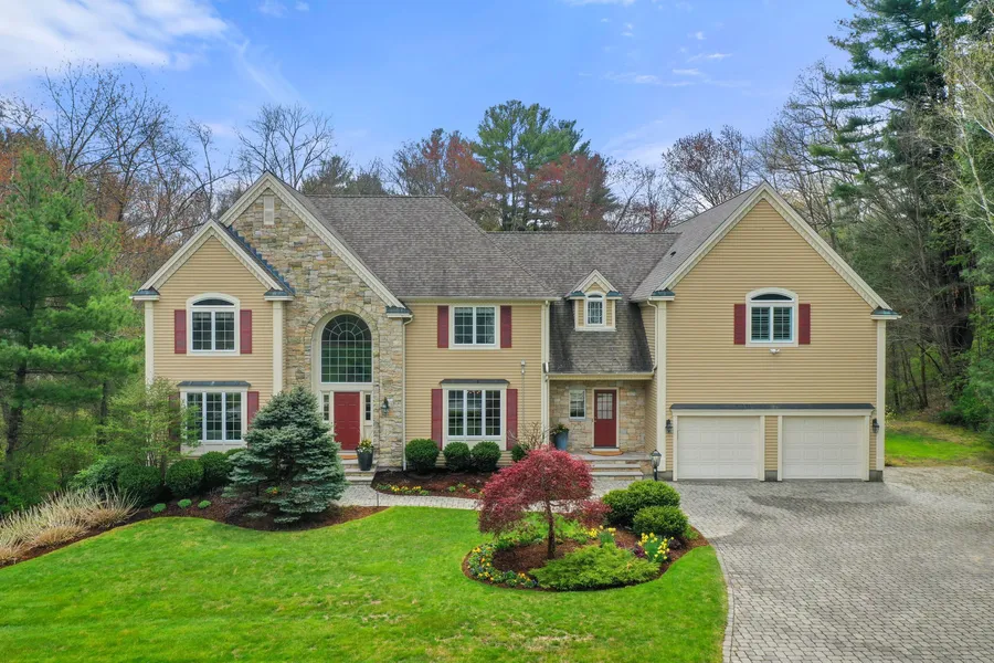 Elegant 5 bedroom colonial in FIELDSTONE MEADOWS, one of Andover's most prestigious and desirable neighborhoods. This spacious home has been meticulously cared for and updated. Hardwood floors grace the formal living and dining rooms surrounding the grand foyer. A tranquil office allows you to work from home or just settle into the tv and fireplace of your expansive family room. A refreshed kitchen with stunning quartz countertops & custom cabinetry. Double ovens and double dishwashers make holiday cooking and cleanup a breeze. Plenty of room for guests with 5 upstairs bedrooms and a finished basement featuring pool table, entertainment center and a 2nd kitchen. Spectacular primary bedroom, complete with sitting area, gas fireplace, his and hers walk in closets and spacious bath. Attention to detail throughout the home extends to the mechanical systems, the 4 car dehumidified garage, a heated driveway with inlaid pavers and a professionally landscaped yard to be admired by all.