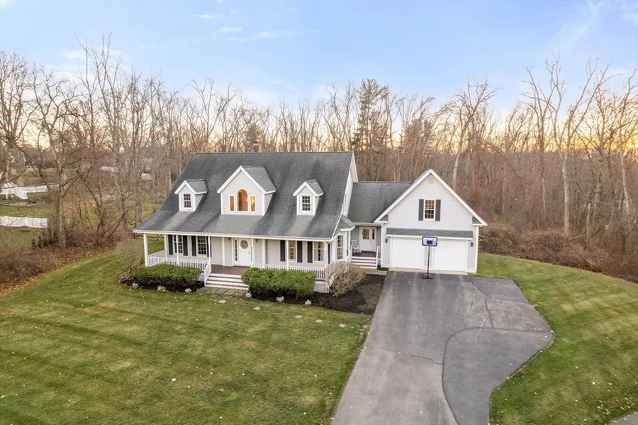 This charming Cape with a picturesque farmer's porch sits on a beautifully landscaped 1.35-acre lot. The bright, expansive main floor features an open-concept living room with a floor-to-ceiling stone fireplace, seamlessly flowing into the heart of the home - the kitchen, which boasts newer appliances, a central island, and a cozy dining nook. The spacious dining room, highlighted by a lovely bay window, offers the perfect setting for hosting holidays and gatherings. The generously sized master suite is complete with a large master bathroom and a walk-in closet. On the first floor, you'll also find a comfortable office, a laundry room, and a half bath. A standout feature of the main level is the stunning sunroom that spans the width of the house. Upstairs, a grand two-tiered staircase leads to two oversized bedrooms, each with massive walk-in closets, offering plenty of storage. The expa...