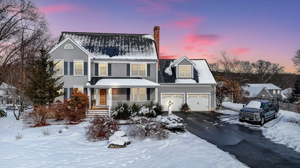 Discover timeless elegance in this stunning, tastefully updated 4-bedroom colonial. Designed for both luxury & functionality, this home features a designer kitchen by Ashley Bongo Design with an 11-ft island, quartz countertops, custom cabinetry, & high-end JennAir and Bertazzoni appliances. The spacious layout includes an inviting dining room with a fireplace, an oversized living room, and a bonus second-floor family room. The primary suite boasts a private bath & walk-in closet, while the 4th bedroom offers a walk-in closet and balcony. Impeccable craftsmanship is showcased through coffered & tray ceilings, wainscoting, and hardwood floors. Enjoy the beautifully landscaped yard with irrigation, composite decks with professional lighting, and a large patio. Additional highlights include a 2020 roof, 2021 Buderus boiler, first-floor laundry, & ample storage. Nestled in a lovely neighborhood close to local Elementary, trails and highways - this home is a must see!