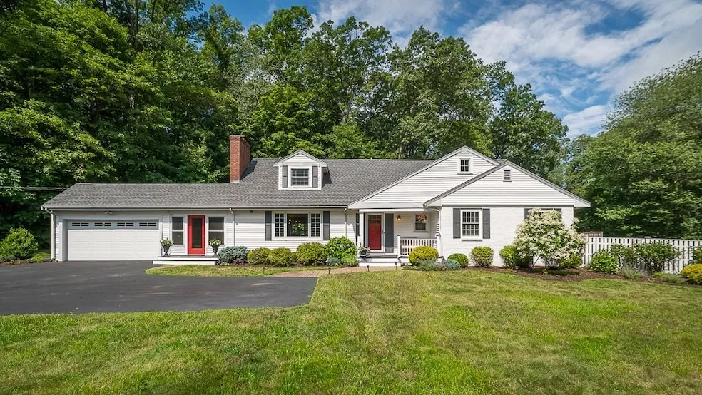 Tucked behind mature landscaping on a private 1.49-acre lot, this sunny and beautifully maintained 5-bedroom, 3-bath Cape is a hidden gem in Wenham s desirable Lord s Hill neighborhood. Enjoy an open floor plan, gleaming hardwood floors and expansive windows throughout. At the heart of the home is a custom kitchen featuring granite counters, stainless appliances, breakfast bar and dining area with sliders to a multilevel deck. The kitchen opens seamlessly into the family room, dining room, and living room with fireplace and custom built-ins. The main level offers 3 bedrooms, including one with an en-suite bath, plus an additional full bathroom. Upstairs, discover 2 more bedrooms including the primary suite with a walk-in closet and en-suite bath. Enjoy the professionally landscaped yard from your expansive deck. Two-car garage, central air. Located in an established neighborhood with top-rated schools and easy access to highways and the commuter rail. Must see!