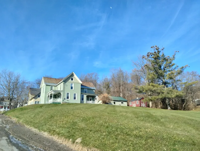 Beautiful 4 bedroom, 2 bath home on a corner lot in town. Well-maintained turn of the century home with modern amenities and old world charm. Original wood work and recently refinished hardwood floors throughout the home. Vinyl siding, slate roof, two porches, pantry room, laundry on the first floor, double living room, formal dining room, eat in kitchen, and so much more. 2 car garage is insulated with its own heating system and electric, as well as an additional storage shed. Paved driveway (2022). One not to be missed. Call today.