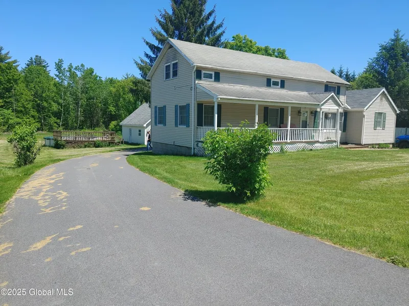 Beautiful Colonial home with paved circular driveway,and 2 car detached garage (24x28) with storage above. Above ground pool with deck, additional carport. Home has 3 large bedrooms, den, formal dining room, country kitchen, pantry master suite and laundry room. Home is also wired for a generator. Sitting on a full acre, close to town amenities, schools, parks, walking trails and Northern end of Lake George. Minutes from Mossey Point boat launch and beach. A must see!