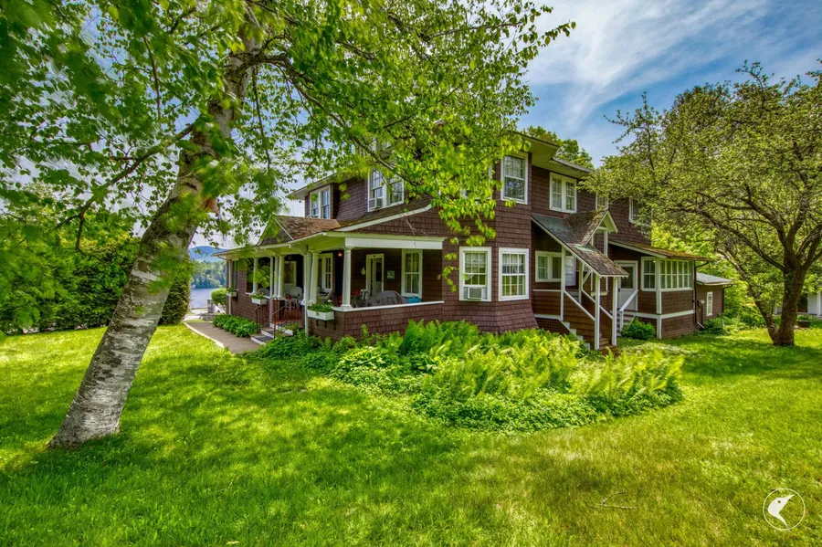 Enjoy timeless turn of the century charm with sweeping views of Mirror Lake and the surrounding mountains, just a stone's throw from Main Street in the heart of Lake Placid. This charming six bedroom, three and one half bath home offers over 3,000 square feet of living space and is ideally situated in a favorable vacation rental location, making it equally appealing as a primary residence, investment property, or seasonal retreat. Built in 1907, around the same era as the historic Stevenson House Hotel, this home showcases the craftsmanship of its time with stunning maple hardwood floors, richly trimmed maple doors and ceilings, and a grand stone fireplace that anchors the living space. Multiple porches, both enclosed and open air, invite you to enjoy fresh mountain air and lake views in every season. Located in the village of Lake Placid, this property sits amid a backdrop of Olympic he...