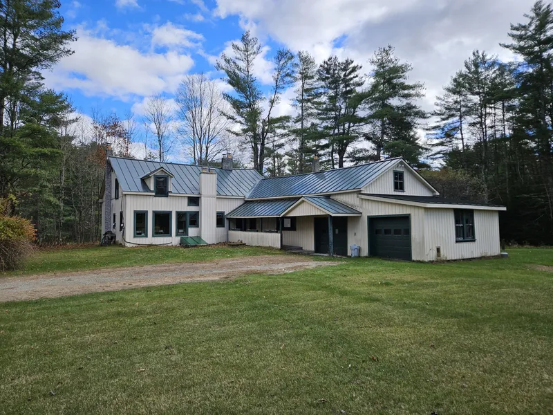 This spacious, two-story home, originally built in 1806, offers spectacular views of Bald Peak and Green Mountain on this 23.14-acre property in the Adirondacks. The interior features 4 bedrooms, 2 full bathrooms, and an office with a wood stove. The ground floor's welcoming living room features a wood stove nestled against a stone wall, creating a cozy atmosphere. The home also includes a spacious den with a stone fireplace. Exposed wooden beams throughout add character and warmth to the living spaces. The well-equipped kitchen boasts modern appliances, Adirondack green granite countertops, red birch cabinetry, and a central island, ideal for meal preparation. A bright dining area with large windows offers picturesque views of the surrounding mountains and local wildlife. Throughout the house, you will find thoughtful details such as built-in bookshelves, hardwood floors, and carpeted a...