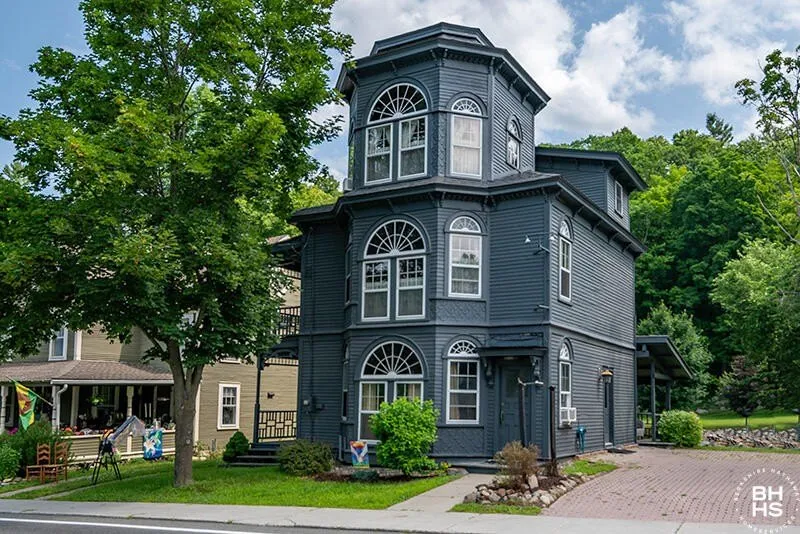 The Castle House, built in 1890, is an incredibly unique building situated in the heart of the High Peaks in Keene, NY within walking distance of restaurants, groceries, shopping, and the Ausable River. Being sold fully furnished and turn key! This prominent three-story Victorian has been meticulously restored in conjunction with the Historic Society. The woodworking details and craftsmanship are truly remarkable. The home boasts plaster murals in the dining room, period staircases, coffered wood walls and ceilings, parquet hardwood floors, and four porches. It has been recently updated with a new roof, new electric, plumbing, bathrooms, furnace, septic and stainless-steel appliances. With the scenic Jones Brook in the backyard, this home offers the best of waterfront living. The building, zoned as mixed use, is also an ideal space for commercial endeavors, and has been used as a successful rental income property. In the 60's and 70's it was the home of Skyline Outfitters, a mountaineering store, and later it became a boutique craft beer store and gift shop. This is a truly unique building that must be seen to be fully appreciated. This home has a Preservation and Conservation Easement which requires no changes can be made to the exterior existing facades and to maintaining the building as is. The document is available for review upon request.