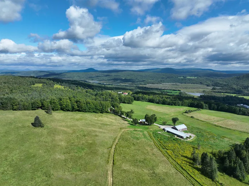 This former dairy farm has been meticulously transformed into a modern, inviting property that could serve a variety of uses. Set on 371 acres, the property includes 2 homes, garages, barns, and an old sugarhouse. The main house, a 1982, 3-BR/2-BA log home that has been beautifully renovated from top to bottom, blends seamlessly into the Vermont landscape, and the 9x40’ front porch is the perfect spot to watch sunrise over the fields and the mountains beyond. Built in 2021, the 2-story rustic-industrial guesthouse has a garage and studio space on the main level, with an open kitchen/living room, ¾ bath, and sizable bedroom upstairs. Both homes boast standing seam roofs, Pella thermal insulated windows, porcelain tile floors, and stamped concrete patios. A detached 3-stall garage at the main house offers storage above, and across the driveway is a 48x62’ garage with a workshop and drive-in/out snowmobile garage on the 2nd floor, and a 2-BR guest space on the top floor. At the end of this town-maintained road you’ll find the connected barns. Measuring 50x80’ and 45x135’, they are in excellent condition and can be used for storage or configured to once again house animals. The acreage is a blend of open and wooded land that includes hayfields and meadows, 6 miles of established trails for year-round use, and Cold Brook runs through the property year-round. Come see the quality materials and craftsmanship for yourself and imagine the possibilities with this unique property.