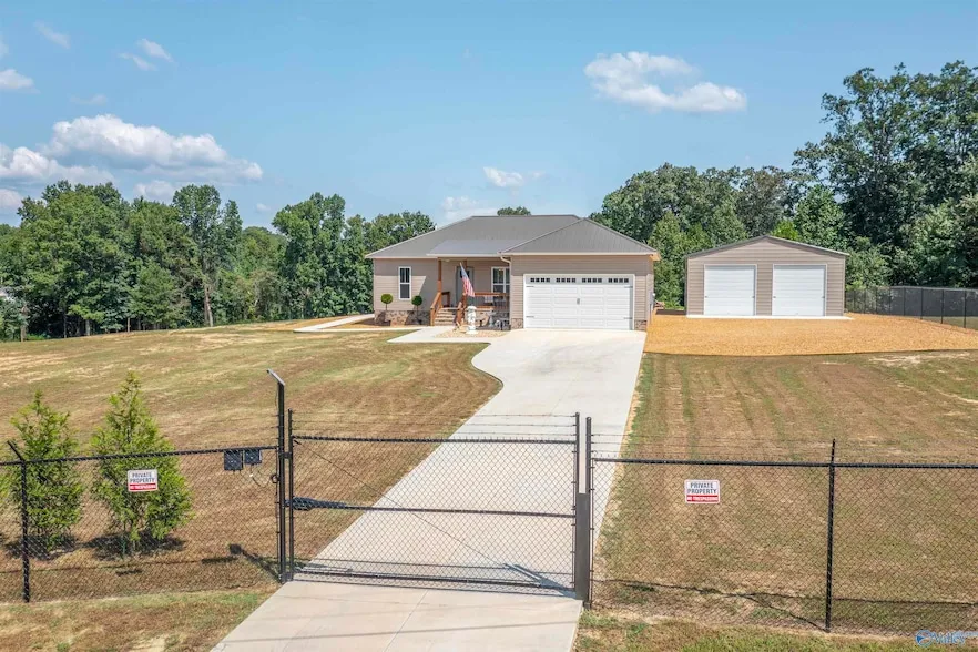 Don't miss your opportunity to catch this One of A Kind property. Built in 2023 and situated in the Sardis School district this property boasts 3 beds, 2 baths, 1,515 sqft, and sits on a large 2.55 acre tract with power gated entry into the fully fenced yard for privacy and security. From the custom cabinetry and granite countertops, to the covered deck and large lighted concrete patio this home was made to entertain or enjoy as your own little country oasis. For even more peace and quiet venture down to the stream running along the back of the property or out to the 900 sqft 3 bay detached garage. With 100 tons of stone landscaping the lawn maintenance is a breeze.