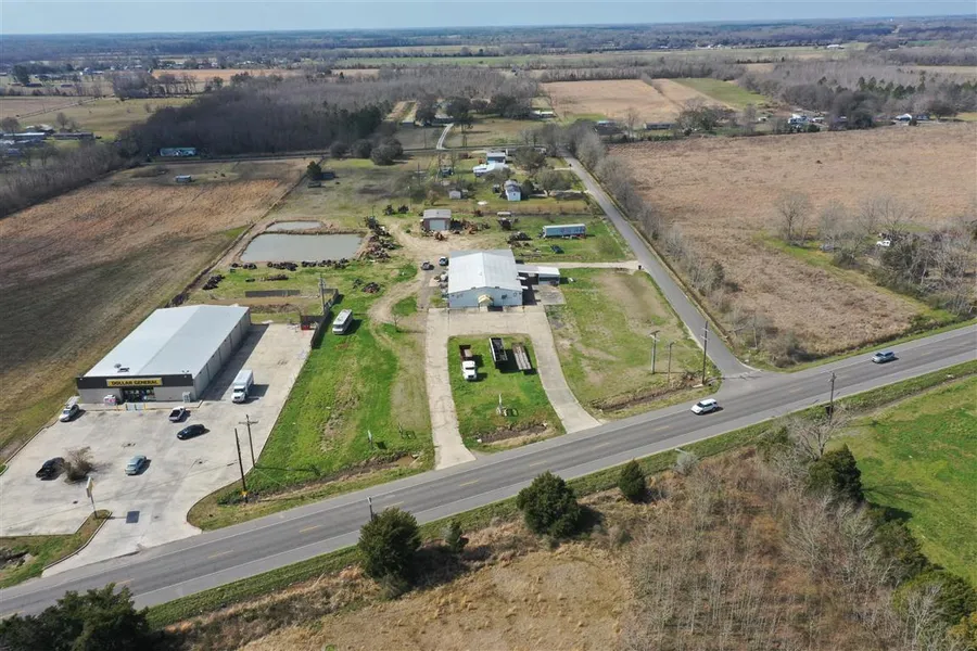 Six (+/-) acres corner lot. One 7,800 (+/-) square foot metal building could be used for restaurant, office, shop or show space. One additional 1,300 (+/-) square foot metal shop building.