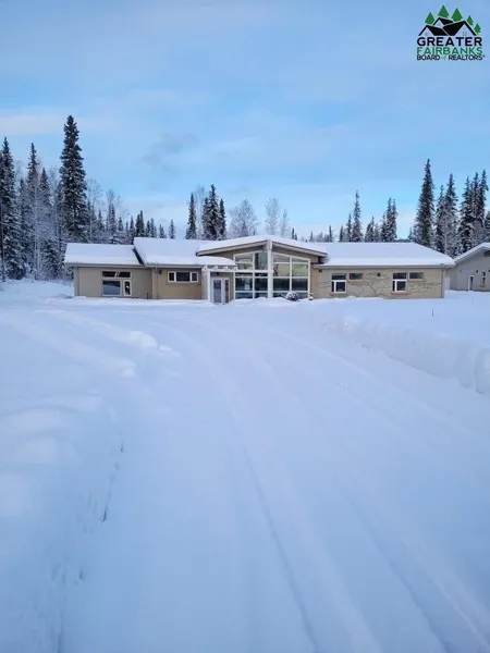 What an amazing property. It was built to accommodate an assisted living facility. All the finishes are beautiful high end. The design is modern with clean lines. There are five bedrooms all with their own bathrooms. The kitchen is equipped with a gas stove. Light floods in the living room from the South facing windows. There are 2 separate rooms that would be for office. This extraordinary property would work for assisted living, child care, a small beginners church, or a BNB or for a family. Its minutes from UAF. Purpose built assisted living home (5) Resident Rooms + attached administrators apartment. (7) Bathrooms (2)Kitchens (6) Bedrooms (2)Laundry Rooms Slab Heat/HRV/Water Well/ Septic Vacant Water damage to foundation current insurance litigation.