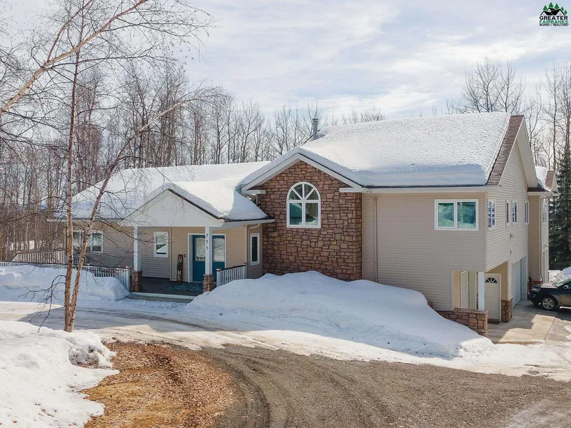 Stunning 5 bedroom, 3.5 bathroom home situated on sunny, south facing Taiga Woodlands. Enjoy the warmer winter days above the ice fog, yet only minutes to town. Custom homes includes 6 person hot tub, large home gym and oversized four car garage to store your toys. Radiant heat throughout, up and downstairs laundry. His and hers walk in closets. Gas fireplace to warm you up after you take advantage of an amazing trail system right outside your door! Fenced yard for your four legged friends and a large deck to enjoy the midnight sun.