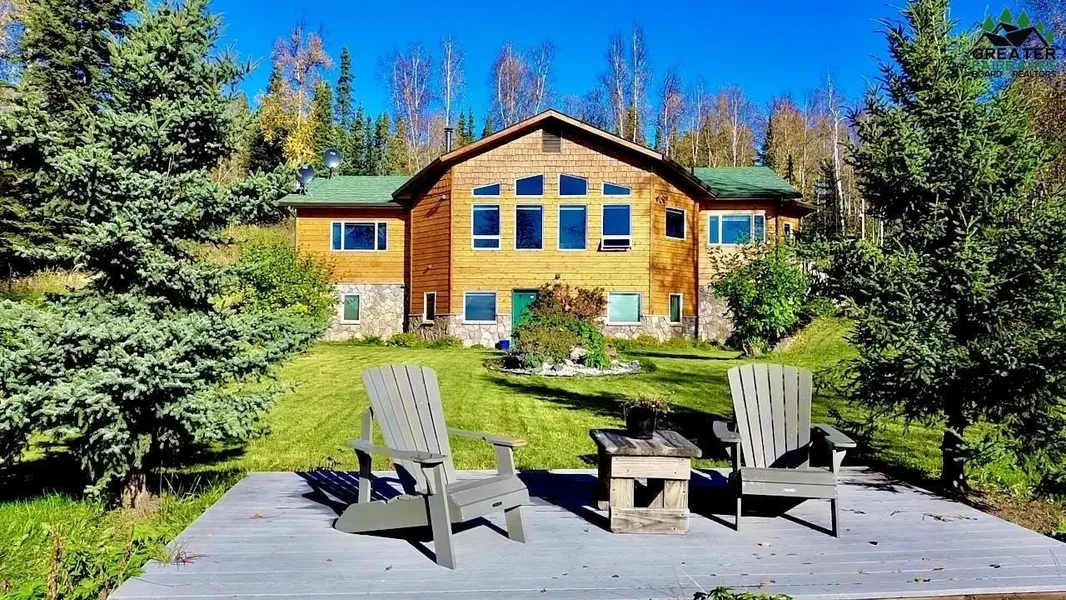 This standout property offers an opportunity to own 54 acres on top of a hill with incredible unobstructed Panoramic South facing views of the Tanana valley, with Mt Hayes front and center and Denali visible from the kitchen window on clear days. Despite being a convenient 20 minute drive to Fairbanks, its location also makes it a fantastic venue for aurora viewing. Purchased from the original owners and currently owned by a single family, this would be a fantastic income generating property as a bed and breakfast, AirBNB or Aurora viewing venture. Thoughtfully built, meticulously maintained, and recently updated this home offers Alaskan luxury living at its finest. Inside you'll find immersive views of the mountains and valley from all rooms on the main and lower level, the vaulted ceilings enhance the large viewing windows in the living room. Multiple display cases, a wood stove that u...