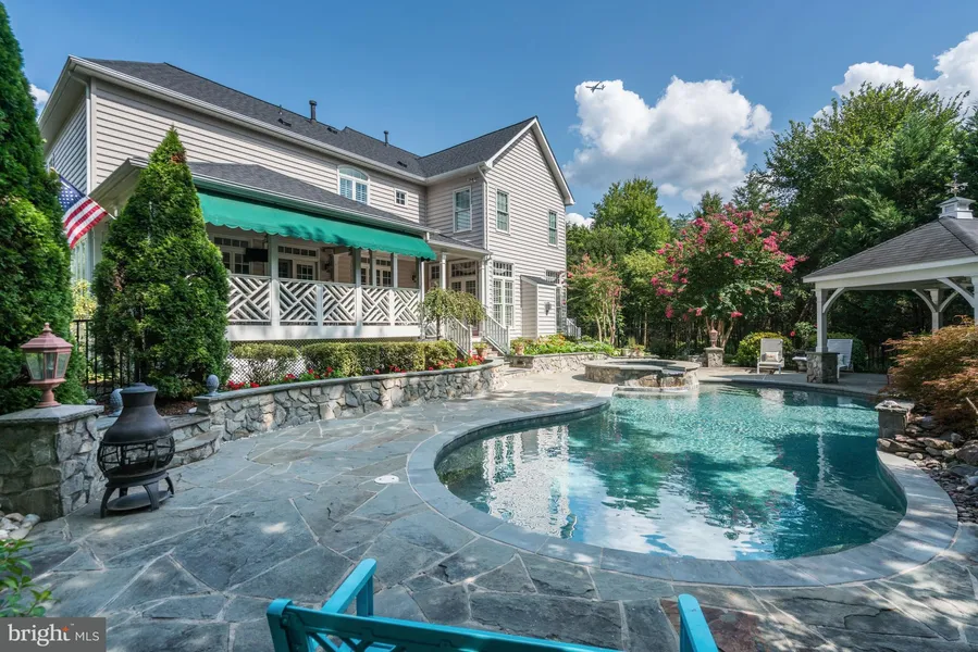 Brick Front w/ 3 car side load garage on over 5 acres. Private lot has in ground pool, hot tub, waterfalls, cabana, covered porch & deck backing to trees. Finished bsmt w/ rec room, full bath & bar. Main level has gourmet kitchen w/ granite, family room w/ gas FP, laundry, conservatory, office, living & dining rooms.Master BR w/ sitting room, walk-in closet & upscale bath w/ Jacuzzi & steam shower