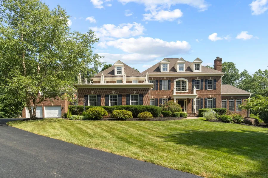 Perched on its own hilltop, with a direct view of the lake behind it, a barbicanned entry leads you up the private driveway, revealing the understated Federal architecture of the residence. This 5 BR/8BA residence is designed to capture sweeping views from every direction, the first floor offers unobstructed views from the foyer, formal dining room, the formal living room, the Great Room, the Chef's kitchen, and the Office Suite back to the grand stairway. The office suite, solarium, Great Room, and Kitchen all offer direct access to the rear deck which overlooks the forest and the lake behind the main building. The large mudroom/laundromat leads to the adjoined 3-car garage, as well as a covered walkway to the second building that houses a 2-car garage. Upstairs, the primary suite includes a perfectly scaled bedroom with a fireplace, a spa-quality bath, and a dramatic closet and dressin...