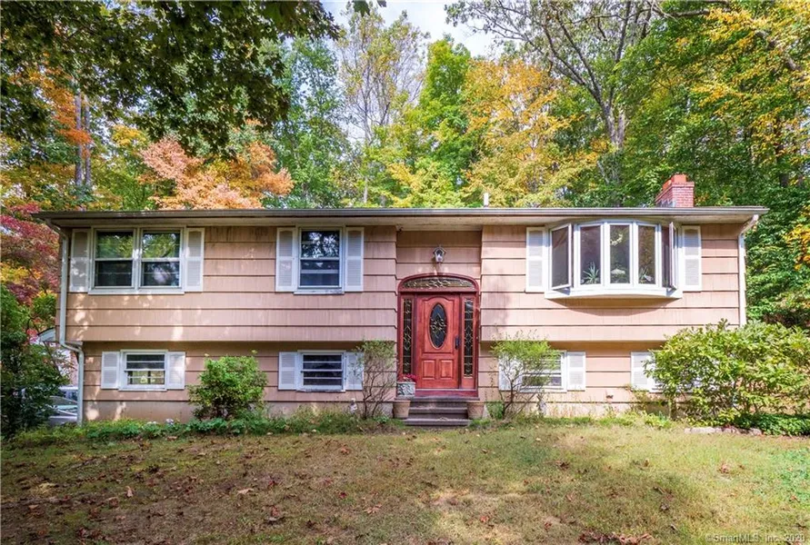 Cul-de-sac setting in desirable area close to West Redding and the Metro North train to Merritt 7, Stamford, and New York - Long time owner added a spectacular kitchen/ great room / open concept addition. The Kitchen features stainless appliances, elegant Kingwood cherry cabinets with granite counters including a large island set with an embossed metal salad sink plus long breakfast bar with granite and high stools. Hardwood floors are throughout the main living area. Great room with Hardwood Floors, ceiling fan and arched windows walks out to 14 x 40 cedar deck overlooking a private lawn area. Almost all windows have been replaced or were new with addition. Only Garage windows and 2 windows in one BR are original. A very large master bedroom with walk-in closet and hardwood floor was created on the LL with the addition. A cozy family room with wood burning brick fireplace is also on the lower level along with a full bath. New roof with the new addition. Note: in-ground oil tank. Home has some deferred maintenance. Note: Exclusions - All Stained Glass Light Fixtures (except lights over kitchen island and breakfast bar) and all Stained Glass Window Arches in Family Room are excluded. Owner still packing and in process of moving to new home - Please excuse the clutter.