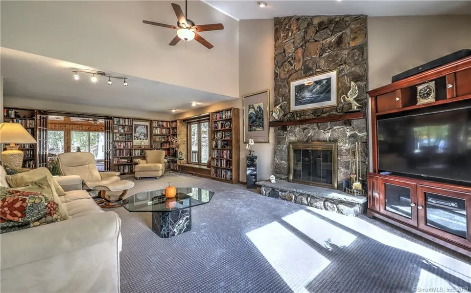 PRICE REDUCED! Nestled on a quiet country lane, this special home offers over 2900 square feet of comfortable living space. Welcome to this sprawling contemporary style home situated on two private acres! Professionally landscaped with specimen plantings and perennial gardens. This home is drenched in natural sunlight and offers views from every room of the beautiful surroundings. The interior offers spacious rooms, soaring ceilings, a dramatic floor to ceiling stone fireplace and a dynamite 3 season porch. The kitchen has been recently updated with quality cabinetry and granite counter tops. The massive front to back family room has built-in bookcases, new wall to wall carpeting, skylights and stone fireplace. Enjoy cool Fall nights on the private back deck or in the sunroom. Bonus first floor bedroom or office. First floor full bath. The second level boasts a master bedroom suite with ...