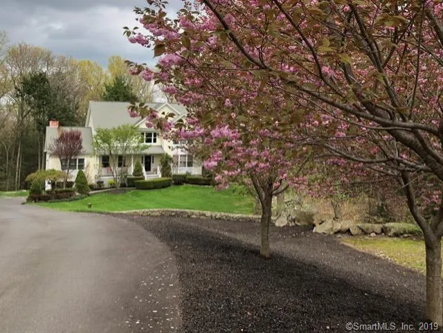 Enjoy the serenity of this private (4 acre) setting with mature plantings and stone walls from the front porch.This meticulously cared for ( 4 bed. 2 1/2 bath) farmhouse colonial is located on a sought after cul-de-sac street. The main level (except for the tiled foyer) has wood floors and lots of molding. A large eat in kitchen with granite, tile and stainless steel appliances flows into the family room with a wood burning fireplace and sliders leading to a large deck. A living room, dining room and office (with built-ins) complete the first floor. The upstairs features a master bedroom with full bath, 9 ft. ceilings, molding and a huge walk-in closet. Three additional good size bedrooms with a hall bath complete the second floor. The wall to wall carpeting in all 4 bedrooms had been updated in 2019. The lower level features a walkout to the backyard, tons of storage and possibilities for additional living and entertaining space ( waste pipe plumbed for a future bathroom). There is also access to the 2 car garage with its newer carriage style doors. Recent updates include water heater (2014),oil furnace (2015), a/c ( 2017) and shower doors (2018). Don't miss out on seeing this special home.