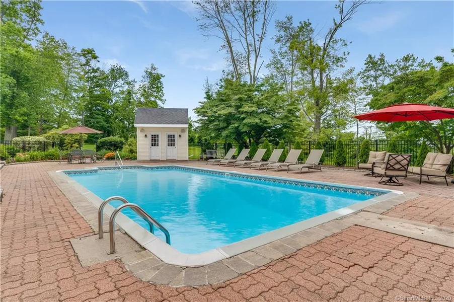 A home designed for comfort and entertaining, indoors and out! Set on nearly 2 private acres with a large courtyard featuring an in-ground heated swimming pool, cabana and professional landscaping abound. The main floor has two living areas, formal dining, powder room and a Bedroom with En Suite Bath suitable for use as an Au Pair. Alternate uses are endless; Perhaps an office, sitting room, art studio or even a garden room with all its natural light. The remodeled traditional style kitchen, is the heart of this home. With an abundance of cabinets, Granite counters, center island, Stainless Steel appliances including Gas cooktop and Double oven, two breakfast bars and a separate eat-in area, you're sure to gather here morning, noon and night! On the second floor you will find three more nicely sized Bedrooms and a tremendous Master Suite retreat. With vaulted ceilings, a grand Palladian window, built-in shelving, gas fireplace, 4 closets, a separate sitting area, study and/or nursery and a luxurious En Suite Bath that you have to see to appreciate. Your entertainment continues in the lower level where you'll find a game room, gym, and another full bath. If that's not enough, make your way to the indoor sports court which is the size of a standard racquetball court and is equipped with an electronic basketball hoop. The list of updates and unique features in this spacious Colonial go on and on. Generac whole house propane generator included. 360° Virtual Tour available.