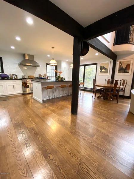 North Street school district! Wonderful post & beam construction on2 level park like acres. Renovated in 2018 This chic and special home is surrounded by nature at it's best including close proximity to the Mianus River Park trails entrance for an added exceptional experience with nature.Updated chefs kitchen w/Wolf range & Subzero refrigerator, wine cooler & more. All bathrooms updated. Master bath w/marble floor,shower & gorgeous marble sink.Double face fireplace in 2 story family room. Sunroom off mud room & kitchen area. Beautiful wide board flooring.Finished lower level included in square footage.Escape the noise to this tranquil yet convenient location just off Stanwich Road.Perfect get away home or a very sweet place to call home!Plenty of FAR is so desired