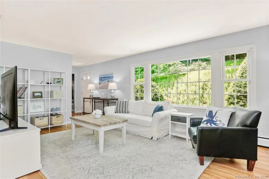 This private, recently upgraded, sparkling 3 Bedroom 2 Bath home is for today's buyer wanting easy living and Move IN Condition in a desirable South Wilton neighborhood! Enjoy CENTRAL AIR and hardwood floors plus 2 car garage. This ranch house boasts great natural light with an open concept layout and Clean Modern Finishes Ideal for Entertaining. Comfortable living room with great picture window and wood burning fireplace. Dining area is adjacent to both living room and fabulous family sunroom that completes the open space living. The versatile family/sunroom/office features a gas fireplace, vaulted ceiling, doors and windows looking out to the deck and backyard. Enjoy the serenity of breathtaking views of flowering trees and evergreens throughout the home. The kitchen has brand new tile flooring, white quartz countertop, stainless steel appliances and white subway tiled backsplash. All ...