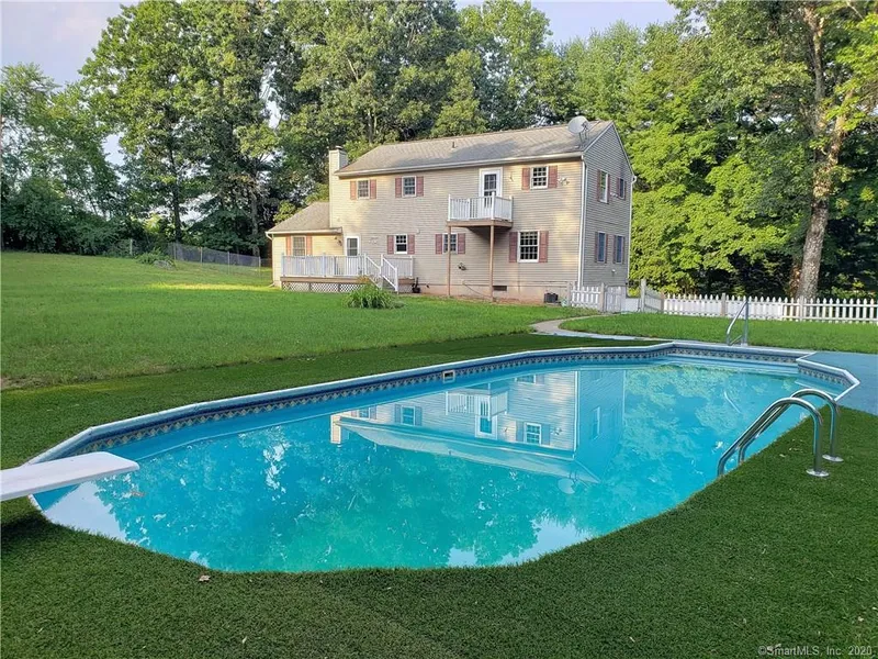 Staycation!!! This spacious home awaits you on a private 0.99-acre property. A beautiful 3 bed 3.5 bath Colonial has an open concept first floor that leads you through the living room, formal dining and eat-in kitchen with island. First-floor den can be used as a 4th bedroom. The family room opens to a very bright and spacious office. Out of the kitchen's door is a deck overlooking a large yard with an inground swimming pool and a cabana to create a wonderful summer oasis. The Master bedroom suite has a large walk-in closet and a small deck. The laundry room is conveniently located on the second floor. Extra laundry hook up is available in the full basement which has the potential to be converted to an in-law apartment with its own private entrance, bathroom and tons of storage. Easy access to major highways. This house is ready for you to make it your own.