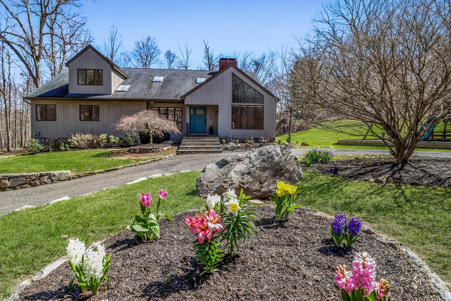 Captivating sundrenched contemporary cape meticulously maintained & styled to perfection! Oversized windows, vaulted ceilings, gleaming hardwood flrs & architectural interest are the hallmark of this open & airy home. Divine updated kitchen w/nothing spared: white painted wood cabinets w/soft close drwrs, top notch SS appliances (incl. wine chiller& induction cooktop), quartz countertps, glass backsplsh & breakfst nook w/seating &addtl storage. Adjacent are a full pantry, spacious &light filled formal DR & FR w/fieldstne FPLC & sliders to deck w/easy sightlines & transition for in/out door entertaining. Dramatic LR w/flr2ceiling brick FPLC & wall of windows, office w/built-ins &limestone pwdr rm complete common areas. 2 primary BR's (1 up & 1 down) + 2 guest BR's, all offer exceptional en-suite full baths & flexibility for lifestyle needs. Both primary's feature luxurious 5 piece bathrms w/separate jetted tub & shower (1stfl is marble w/relaxing freestanding sauna & 2ndfl renovated w/finest appointments of natural stone & high-end fixtures) & generous closets (1st-WIC & 2nd-3large). 2 Guest RM's share updated Jack-n-Jill bath w/natural stone flrs & subway tiled shower/tub. Addtl unfinished 1100 SF in LL offers option to expand livable space. Sublime setting in true "neighborhood" w/out thru-traffic, sited on 2 glorious acres offering spectacular curb appeal-stone & cedar siding, welcoming circular drive, 3 car garage, & outstanding playspace-this is your happy place!
