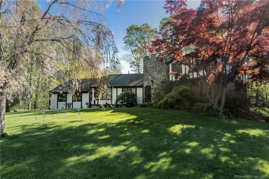 Write your very own fairy tale in this custom built castle sited on beautiful park-like grounds with blooming trees, a babbling brook, and gazebo on a quiet cul-de-sac. Step inside the stone turret and you will be greeted by a real suit of armor! Looking up you get a fantastic view of the stone work, spiral staircase and impressive chandelier. Once into the main living area you will be wowed by the vaulted ceiling and exposed beams that draw your eye to the stone fireplace. To the left of the living room is a spacious and bright formal dining room with hardwood floors. The dining and living both access the kitchen which features all new appliances and a new tile floor that leads to a cozy den, the main-level laundry area and a full guest bath along with access to the backyard. Set away from the entertaining space on the far right of the home and feeling very private on the first floor are two bedrooms giving you the option of setting up your master on the first or second floor. Head up the spiral staircase where you will find a large updated full bath and 2 more large bedrooms both with hardwood floors. The current owners raised the ceilings in these bedrooms creating ample headroom and adding true square footage without impacting the exterior charm and architectural detail. There is storage everywhere in this home including an oversized 3+ car garage, enormous unfinished basement w/workshop area, and attic storage. Keep checking for more photos.