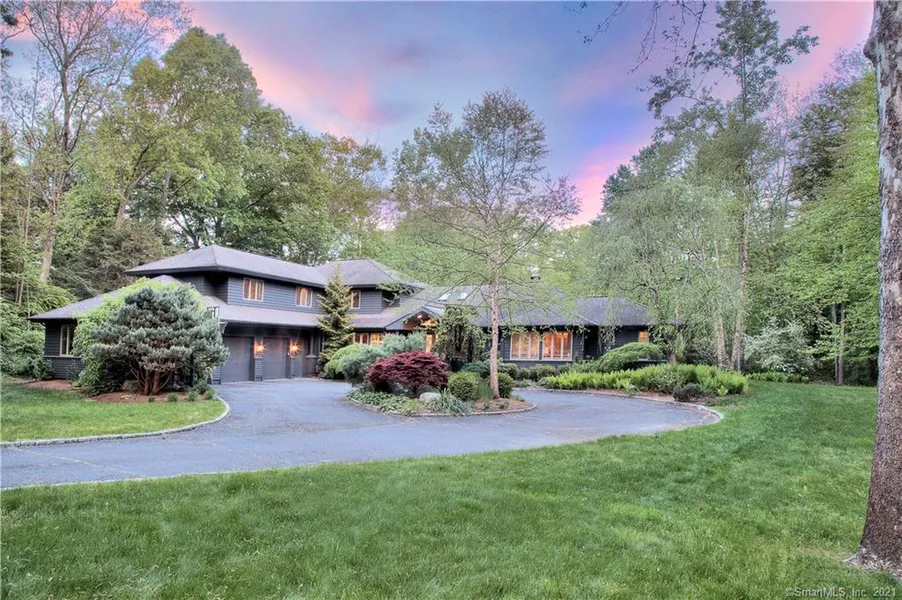 Fabulous Lower Weston Contemporary. Surrounded by gorgeous, professionally landscaped property this cool contemporary enjoys in one of the most gorgeous settings in Weston with 220 feet of direct water frontage. Stylish and sophisticated this 5 bedroom, 5 bath home offers walls of windows, vaulted ceilings and large scale rooms. Entertaining is easy in the Chefs kitchen with granite countertops, stainless steel appliances & French doors to the expansive terraces and decks overlooking the water. Catch a fish off the dock from the stocked pond and grill for guests in the high-end outdoor kitchen. Truly outdoor living at its best! Feast with family in the stylish dining room, relax in the Great Room with it's stunning views or snuggle up in the family room in front of the wood burning fireplace.Retire to the, first floor master suite, which also enjoys water views, the 3rd wood burning fireplace & private deck. Two walk-in closets, a marble bath and flexible, quiet office or nursery complete this space. Upstairs are 4 bright spacious bedrooms, 2 with direct water views, 2 more full baths & great closet space. There is a laundry / mudroom and 3 car attached garage. Located in Lower Weston on a private street, this home has quick access to both Weston and Westport Town Centers, Westport trains and Weston's Blue Ribbon schools. Approx 1 hr from Manhattan.