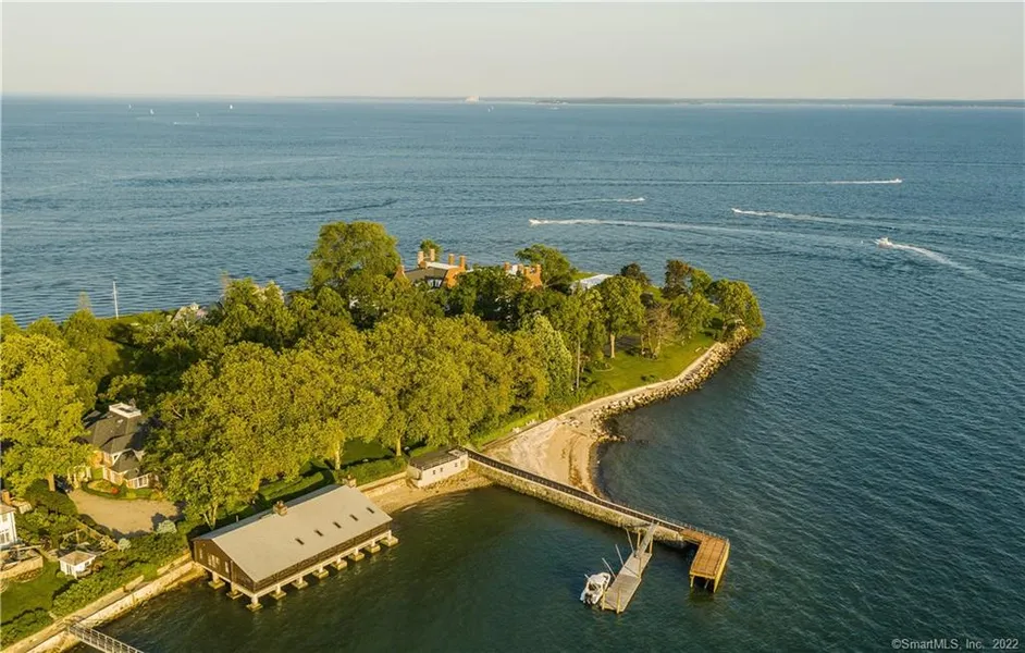 Exceptional location on Long Island Sound with panoramic views of the New York City skyline and Long Island in the distance. This gracious 8,088 sq.ft. home and incomparable 2,983 sq.ft., three bedroom cabin with its 100-foot screened-in porch over the water are at the end of a much sought after peninsula location. The main residence has six bedrooms, eight full and one half baths and four fireplaces. Breathtaking sunsets viewed from the main house and historic cabin. Association dock and/or mooring for your boat, private beach and boat house storage for your kayaks and paddleboards. All in close proximity to Manhattan. This is rare opportunity to own a southwest facing property inside the gates of the private Long Neck Point Association. Listing agents related to owner.