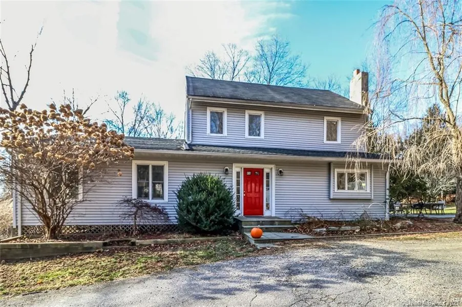 Situated on 4 acre private lot, this 3 bed. 2 1/2 bath colonial is nicely distanced from neighboring properties. Stone walls outline the perimeter and the remains of a stone foundation of a a barn from a bygone era make this property unique.The first floor features a generous foyer (dining room from the past). Pocket doors lead into the kitchen (updated 2013) which has s/s appliances,wall oven, gas range, granite counters and plenty of windows. Nearby is the dining room with a fireplace and a 1/2 bath. Another set of doors off of the foyer brings you into a massive light filled great room with french doors that open out to the yard with a slate patio.The second floor has 2 bedrooms, a full bath and a laundry area. A third room that was once a bedroom (now an office) has a staircase up to the finished attic. This sun fillled finished attic is now being used as the primary bedroom with a f...