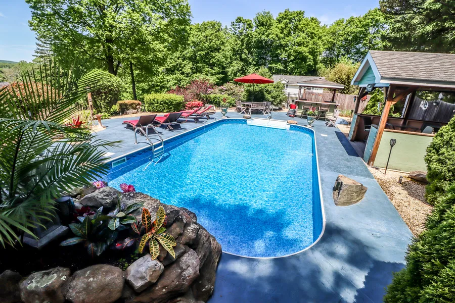 With its hilltop vantage point, this property is a striking presence. On the market for the first time in 30 years, this represents a remarkable opportunity. As you discover its irresistible qualities, it will surely capture your attention. Where to start? The exterior features: Private, 3.5 acres w/impeccable grounds & landscaping. Gated entry w/lanterns, extensive masonry, mature gardens, rolling stone walls, covered porch, deck, gazebo, & balconies. But the absolute showpiece is the spectacular pool area located on an upper lawn terrace. An outdoor pavilion, pool house, & large patio enhance the in-ground, heated pool experience. Desirable interior attributes: A versatile floor plan w/distinctive architectural details, exquisite design elements, sought-after amenities, and multiple updates. Wait until you see the amazing kitchen! Other notable details: Sunroom with incredible sunset v...