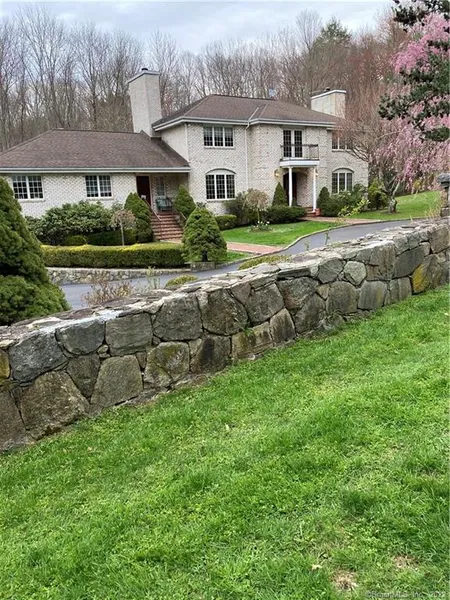 This grand and gracious colonial is nestled on 2.09 acres and offers 4 spacious bedrooms and 4.5 new baths. Many welcoming features that boast the architectural design with magnificent features of the stonework, circular driveway lined with Belgian blocks, paved brick walkways and beautiful plantings. Upon entrance is impressive two-story curve staircase with Carrea marble foyer. Detail molding and spacious formal living room with fireplace. French doors to the family room with built-in bookshelves and gas fireplace. Handsome large windows in the dining room designed with handcrafted molding, tray ceiling all flow into the gourmet kitchen with custom cherry cabinets, granite counter tops, wolf double oven and a 6-burner stove. Complete with a fully functional center island. Adjoining is the sun drench sunroom capped with wall-to-wall windows and skylights. The views of the scenic property blends into nature, with woods and stream and offers much privacy. Included on the main level is the east wing that offers 2 private rooms with bath makes a fabulous stay at home work-space. The upper level primary En-suite offers a fireplace, luxurious spa like bath, and walk in closet. Two sets of laundry areas 1st & 2nd fl. Two additional bedrooms with shared bath, library and balcony. The final touch is the finished lower-level private walk out access to the 3 car garage and offers additional work space or guest suite. Comes complete w/ storage. Pool site awaits your design.