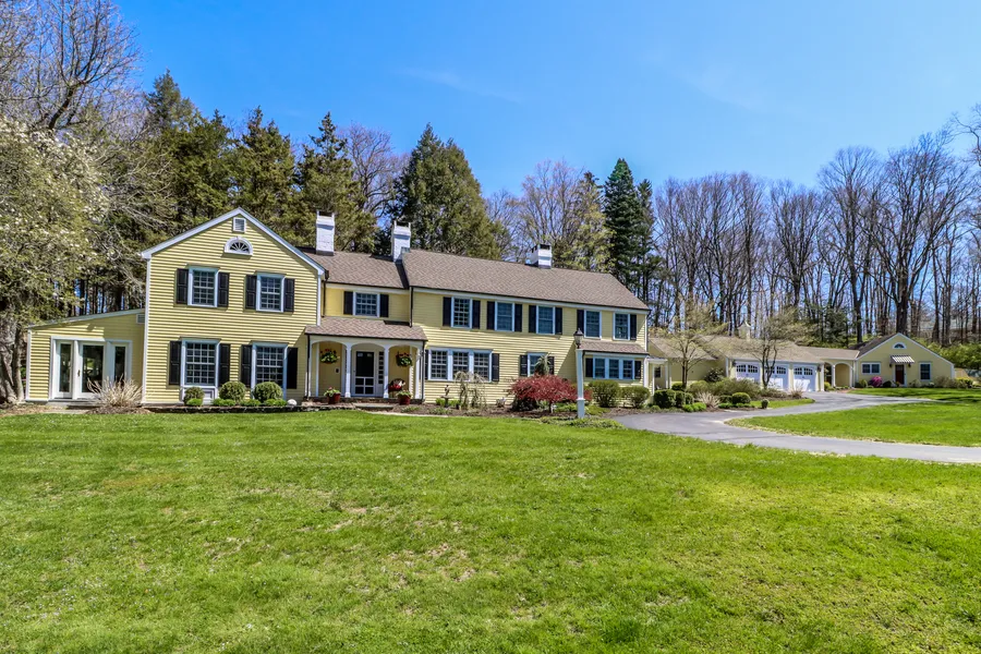 Set on 4.5 private acres between 2 nature sanctuaries, this sublime property is comprised of a 5000 sq ft Colonial, a separate 750 sq ft cottage, & a 3-car heated garage. Recently redesigned & updated, this historic Brookfield estate is an exquisite balance of vintage elements - wide plank floors, exposed orig chestnut beams, 4 unique fireplaces, 2 staircases -& a fresh perspective that incl the finest amenities, light-filled rms, & an overall intriguing interior. Though the space is large, the cohesive nature of its design maintains a sense of warmth. French doors & walls of windows in the family rm & sunrm bring the peace of surrounding grounds inside. This line of vision is apparent throughout most of 1st flr. A richly detailed KT is aesthetically stunning & functionally brilliant. Central wrkspace features an expansive island w/granite counter, abundant storage, & breakfast bar. Also custom cabinets, stainless appls incl gas range, farmhse-style sink, granite backsplash, subway tiles, & roomy dining area. Butler's pantry as well as "summer kitchen" provide add'l prep areas: a luxury for serious cooks. Mudrm w/extensive built-ins keeps organization w/in reach! Upstrs: Primary ste w/BR, 2 full BA, dressing rm, w-i closets, & laundry. Guest ste w/BR, full BA, sitting rm w/vlted ceiling, exposed beams, built-ins, & access to back stairs. 3 add'l BR & 2 BA. Freshly painted exterior. Whole hse generator services main hse, garage, & cottage. House is #34
