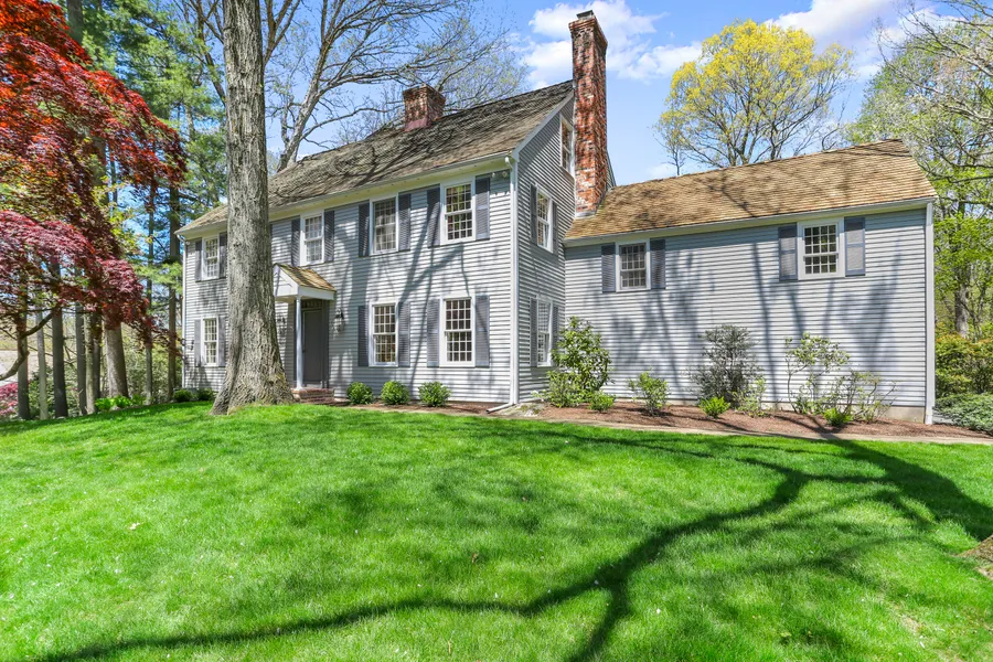 Located in the Old Stone Bridge Association and bordered by conservation land, this sunny 6 bedroom, 4.5 bath colonial is located at the end of a cul-de-sac. The gourmet eat in kitchen opens to a casual eating area and large family room with French doors. A library/office with built-ins and fireplace, open living room and dining room, separate laundry and mudroom area and powder room complete the first floor. A private bonus room and full bath are located above the garage. The second floor features a spacious primary suite with spa bathroom and walk-in closets, and three additional bedrooms, and new full bath. Two bedrooms and a bath complete the third floor. The picturesque level backyard is easily accessible through the French doors in the family room. Enjoy natures beauty in this lovely home by the Old Stone Bridge Wild Life Sanctuary.