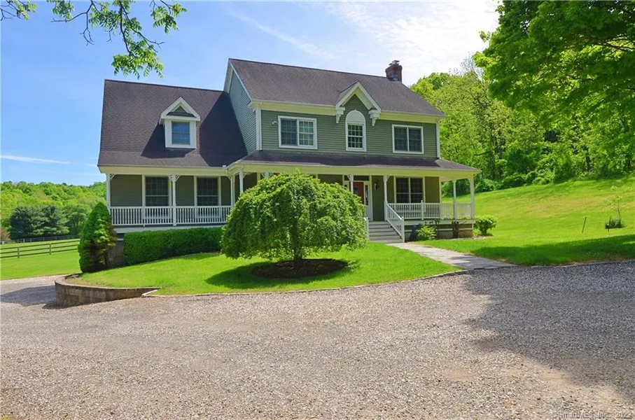 Located on a quiet country road and nestled in amongst horse properties, 53 Pond Brook sits on three gently sloping acres in a very serene setting. This four bedroom, three and a half bath Colonial has a gorgeous front porch, hardwood floors throughout and so much more. Living Room, step down Family Room and Primary Suite all feature wood burning fireplaces. Dining Room has a large bay window that overlooks the backyard. Eat-in kitchen with center island, granite countertops and stainless steel appliances. Main floor laundry. Large 1,872 SF two story barn with lower level in front offers many uses - office, storage, studio, multiple car storage. Backyard is fenced for a paddock and horse trails are located nearby. 5 minute drive to exit 9 on I84. Antique barn is being sold "As Is" due to its age. Just beautiful.