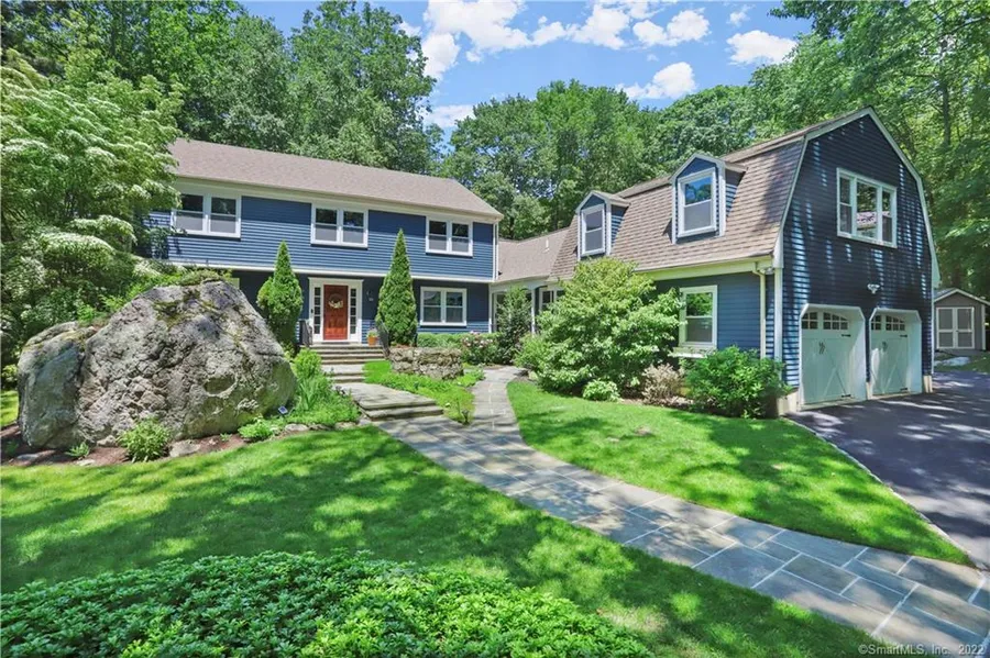 Set on a quiet street, around the corner from Chestnut Hill Park, this updated 5 bedroom Colonial has all of the space you need. The Foyer directs you to the formal Living Room with a fireplace and sizable Dining Room featuring built-in corner cabinets. The 2022 renovated kitchen with marble countertops leads to the wrap-around deck- perfect for enjoying the quiet, landscaped flat yard which can be accessed from the Sun Room as well. The Kitchen adjacent grand Family Room has vaulted beamed ceilings, built in bookshelves and a wood burning fireplace. There is a 1st floor bedroom or office with an en suite. The bonus room with high beamed ceilings is great for a game room or additional living space. Upstairs you will find a spacious Primary Bedroom with a large walk-in closet and bathroom. The other 3 bedrooms are generously sized, with excellent closet space and a full bathroom to serve them. The basement is finished with an entertaining space including a fireplace, large laundry room, a full bathroom, additional quarters for guests or an office with brand new floors installed. The two car garage features 220 volts for electric car charging. Recently renovated, energy efficiency was taken into account with LED lighting and new windows installed throughout. There are smart automated systems, a generator hook up, irrigation system and the house was recently painted indoors and out. Conveniently located close to the Merritt and town, this is the one you've been waiting for.