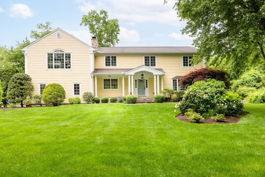 For today's discerning buyer desiring well appointed, amenity-filled spaces. This stunning Colonial boasts 5 bedrooms (all upstairs), 4 full baths, plus an additional 700sf+ finished basement on 1.5 level acres on a private lane. This well thought out floor plan features hardwood floors throughout. Gather in the sunny, white, chef's Eat-In Kitchen with large granite island, Subzero, Thermador gas cooktop, warming drawer, multiple dishwashers, wall oven, bev refrigerator and there's still more to list. The breakfast nook has French doors leading to stone patio. Entertain in the elegant formal Dining Room which also has French doors to the deck. Watch a game, or get cozy by the fire in the Family Room. Upstairs you will find 5 bedrooms, plus a den perfect for a home office, laundry room and 3 full baths. Primary Bedroom with vaulted ceiling offers walk-in closet, dressing area and spa-inspired marble bath with radiant floors and built-in beverage bar including Nespresso machine and beverage chiller. The backyard, designed with a variety of entertaining spaces make this an outdoor oasis to enjoy. Dine alfresco on the pergola covered Brazilian Ipe deck, sip wine on the bluestone patio. No matter your age, you will love the perfectly level lawn. 2 car garage, whole house generator, Hardiplank siding and Azek trim. Conveniently located less than 10 mins to village center and various train stations. 5 mins to Merritt Pkwy. 19 Blue Ridge Lane - THE home you've been waiting for!