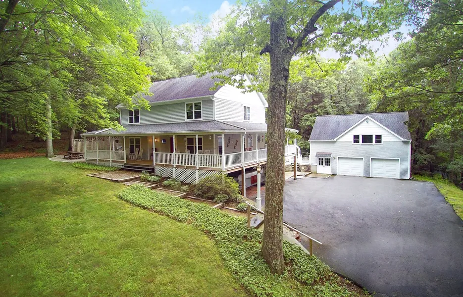 Sip Lemonade on the front porch and enjoy the natural surroundings of this truly special Redding Farm House Colonial built by local builder David Wilcox for his own family. This open floor plan home is privately tucked away on Topledge, adjacent to Topstone Park for hiking, swimming, and recreation, yet only minutes to shopping, restaurants, and the Branchville train station. This well kept 5 bedroom home has a huge wrap around porch, hardwood floors throughout the main and upper levels, and a large walk out lower level rec room. With 13 rooms there are plenty of large family spaces to gather, yet still quite a few smaller nooks to get work done. And did I mention large walk in closets in every bedroom. The kitchen has a center island made for eating and serving, and is open to the great room and breakfast nook, and even a butler's pantry/laundry with a large food pantry. The main bedroom suite has 2 walk in closets, plus 2 linen closets, a full bath, plus an 18 x 12.5 sitting room. Boasting 4078 SF of finished heated space on 3 levels, the property also features a 34x26 detached 2 car garage with a huge 2nd floor bonus room, perfect for home office or future expansion. The yard has several gathering spaces, and includes a fully fenced area for the dogs with their own easy in/out entrance. See the interactive floor plan virtual tour for more professional photos. Book your showing now!
