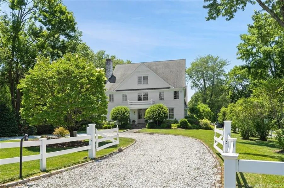 This stylish home with a gorgeous pool in Greens Farms exudes modern elegance and relaxed sophistication. One of the often-admired residences in this premier estate section of Westport, is a very desirable property that combines an excellent location, tranquil grounds and a dynamic home that will exceed your expectations. The gated circular driveway welcomes you to this manicured oasis, which feels like an authentic country escape - yet you will enjoy the convenience of being a stroll to the Metro North railroad station, beaches, schools & Southport Village. The glass double-door entrance opens to a soaring foyer. Gracious living & dining rooms are ready to welcome guests. The gourmet kitchen w/ top-end appliances, vast island, abundant cabinetry, fireplace and adjacent family room flow together beautifully. The unusually flexible layout includes a main floor office, bedroom & full bath to one side - which allows for many options. The mudroom w/ full bath opens to the stone terrace and pool, and leads to the three car garage. A terrific rec/playroom is tucked up rear stairs. The second level has all spacious and thoughtfully-arranged bedrooms, beginning with a terrific Main bedroom suite that is grandly proportioned with beautiful details, a luxurious bathroom with heated floor and very large walk-in closet. The home offers possible bonus spaces for all needs and to provide space for all interests. The sumptuous pool area will enchant you, with a waterfall, spa and privacy.