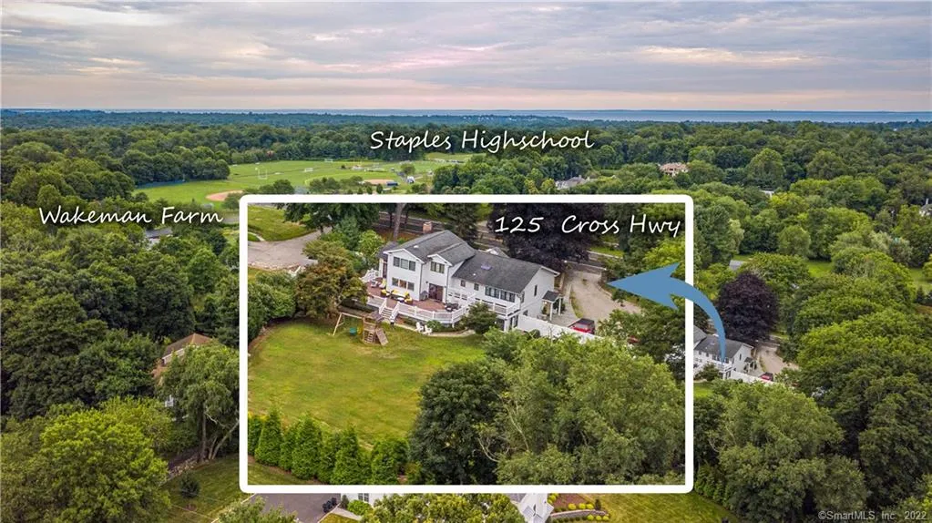 Ideally located within walking distance of Town Farm, Staples High School, Wakeman ball fields & near all of Westport's prized amenities. This Modern home is set on over an acre of bucolic property and comes with rare grandfathered detached structure offering many possibilities. This home has been completely rebuilt and expanded in 2007 and boasts clean, modern lines with high ceilings, gorgeous California redwood floors. The foyer introduces the home and separates the principal areas from the private wing currently set up as a gym. The gourmet kitchen features Sub-Zero, Viking & Bosch appliances, two dishwashers, wine fridge, plate warming drawer, granite counters & spacious center island with windows gazing across the grounds. Step outside to wraparound deck, the perfect spot to dine al fresco while enjoying this gorgeous property. The gracious living room is enhanced by the stone fireplace and opens up to a dining room with cathedral ceilings and connects you back to a wraparound deck. The Master Suite with luxurious bathroom featuring a jacuzzi, double vanity, and large shower. Lower-level with Grand laundry-room, mudroom with separate entry for your horse riding boots or snow boards or skis, and spacious workshop. The fenced-in backyard is an oasis of beautiful flowering shrubs, gardens and large playset. Fueled by Natural Gas and comes with an automatic full house generator so that you never run out of power. Come and see this special home.