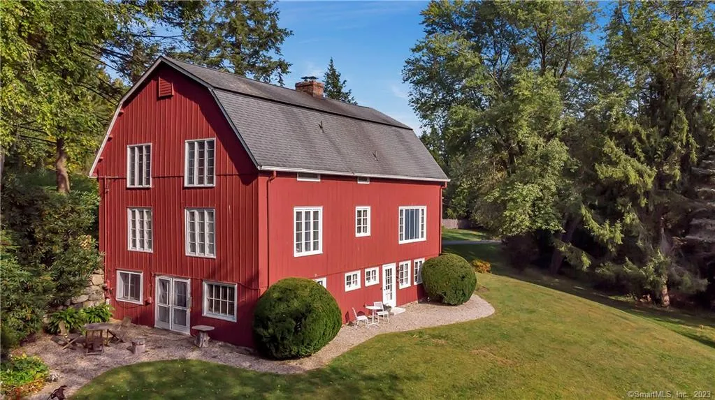 SUBMIT HIGHEST & BEST by Monday, 2/13 5pm... An exceptional antique barn house surrounded by 5.3 acres of stunning property. Previously owned and loved for 63 years by fine artist Arthur Shilstone, the current owners fell into deep love with the barn and the land, expecting to continue enjoying and caring for this extraordinary property as the Shilstones had. An unexpected overseas move offers a wonderful opportunity to continue this tradition. The barn offers an updated, open kitchen, large living room w beautiful vintage French doors opening to side patio, exposed beams, four large bedrooms and 2.5 baths. The astonishing Great Room, with the 2+ story window, lovely fireplace, and breathtaking views of the property and pond, defines the history and the beauty of this oh-so-special home. In a short time thoughtful updates have been made inc the open, light-filled kitchen with exposed beams, butcherblock counters & a toasty-warm pellet stove; expanded yard & driveway, raised gardens, new floors in living room & primary bedroom, new floors/vanities in upstairs bathrooms. Other updates inc new septic, new well pump/UV system & pond aerators. The workshop off the kitchen has plenty of room for washer/dryer. 42 Picketts Ridge Road personifies the vibe of Redding...steps to Norwalk River Trail, rural feeling 53 miles from NYC, small-scale schools, love of nature (hiking, kayaking, swimming), family farmstands & the wonderful history of Mark Twain Library.